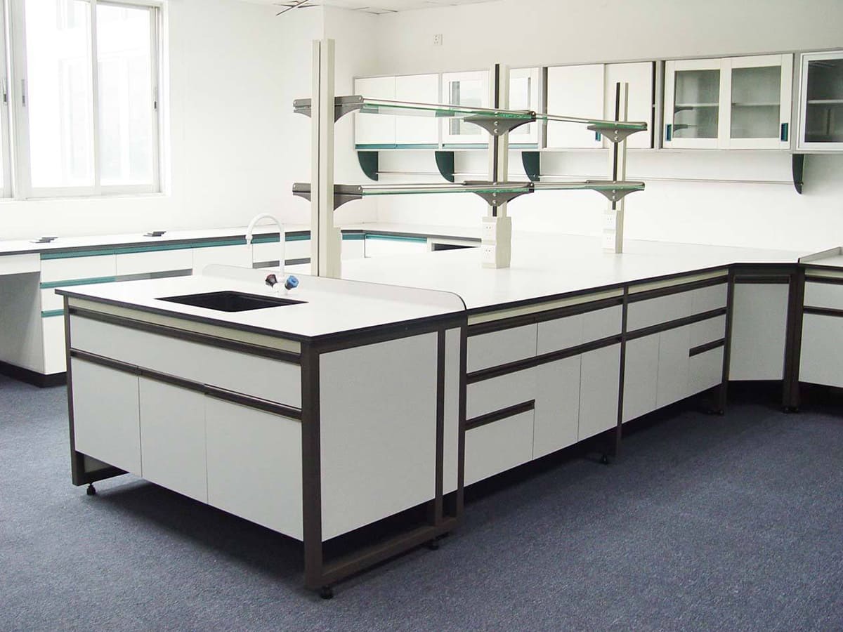 b、實(shí)心理化板采用127mm進(jìn)口實(shí)心理化板,四周邊緣加厚至254mm,邊緣做圓角磨邊處理,符合人體工學(xué)設(shè)計(jì),具有耐酸堿、耐腐蝕、耐沖擊、韌性強(qiáng)等特點(diǎn)。