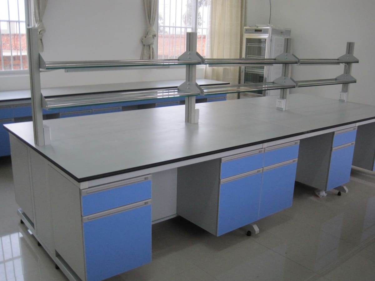 鋼木實(shí)驗(yàn)合不僅可以節(jié)省操作臺(tái)上方空間,而且還具有靈活的可調(diào)功能??梢愿鶕?jù)實(shí)際情況來調(diào)節(jié)試劑架層板的高度。另外鋼木實(shí)驗(yàn)臺(tái)有很好的承重性。支持自由定制生產(chǎn)。